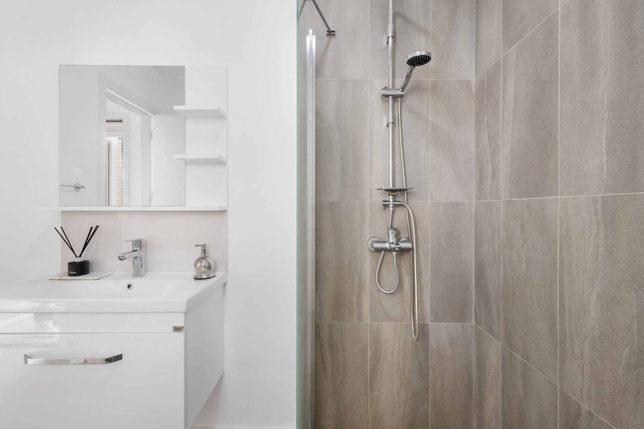 - Modern bathroom with walk-in shower