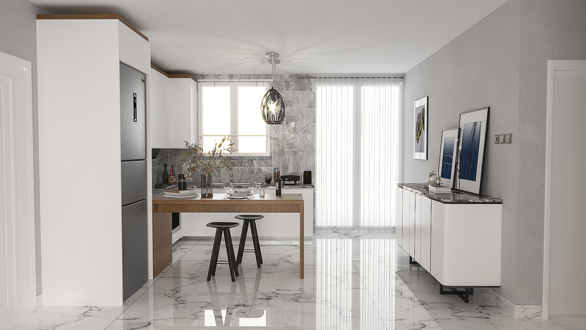 Living Room & Cuisine: 1