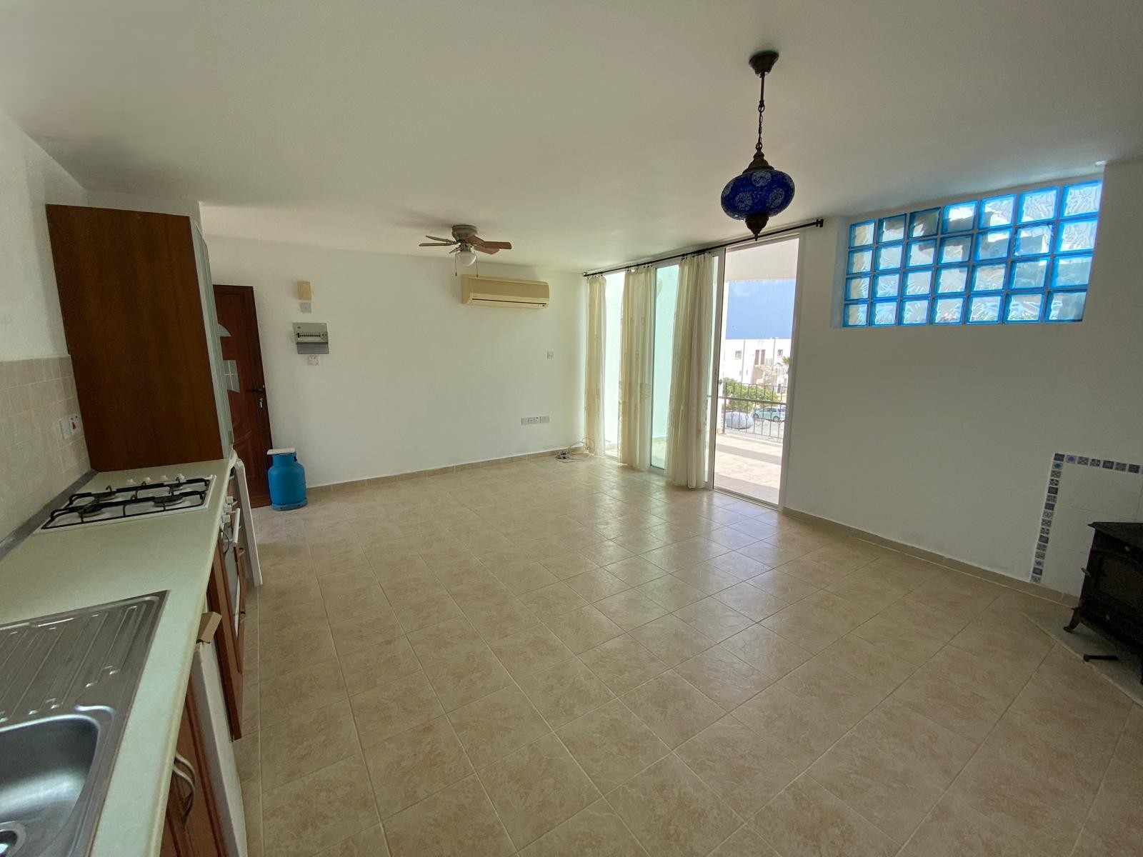 - Bright open-plan living space with log burner
