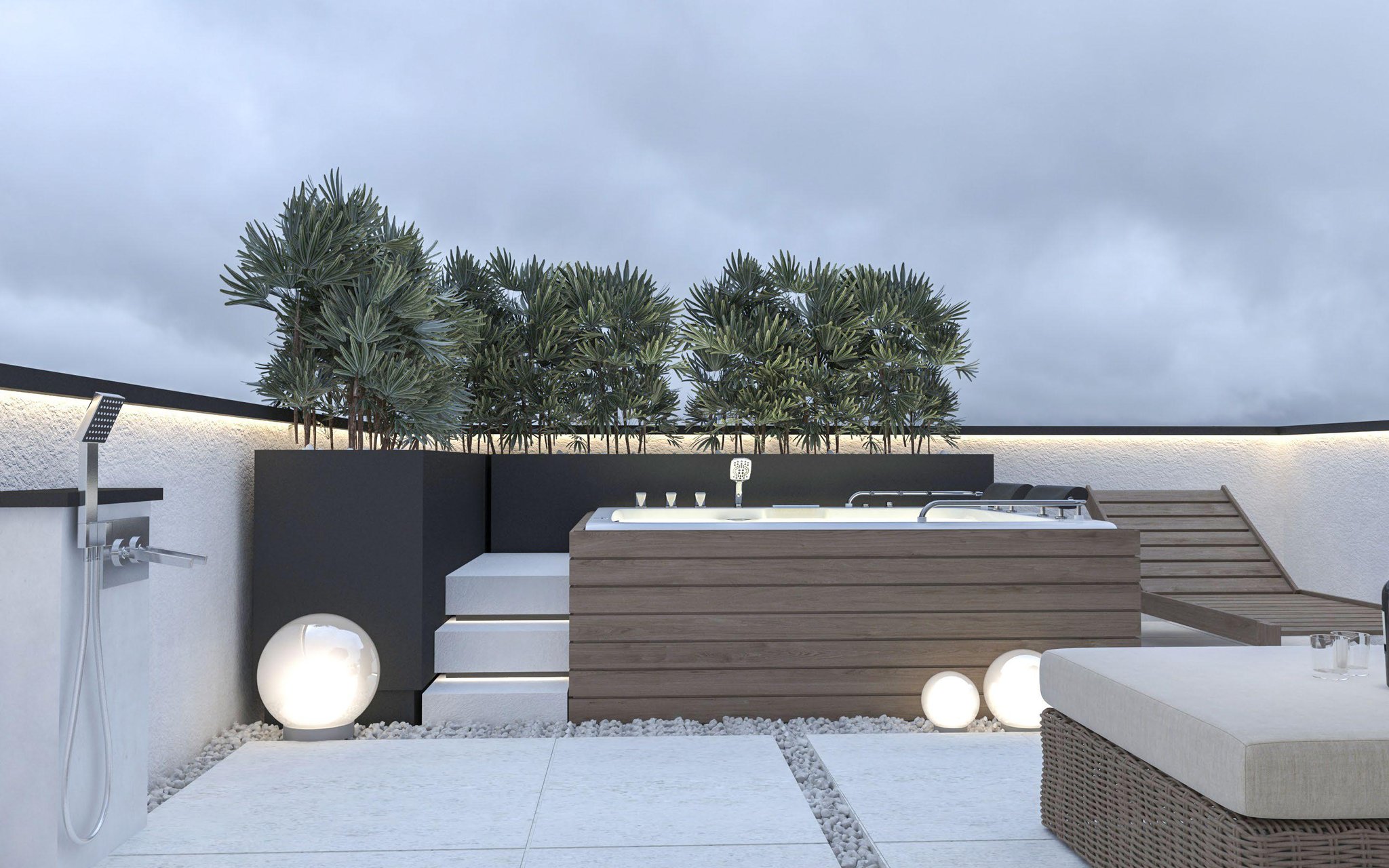 • • Roof garden with Jacuzzi, BBQ, shower, sink & loungers