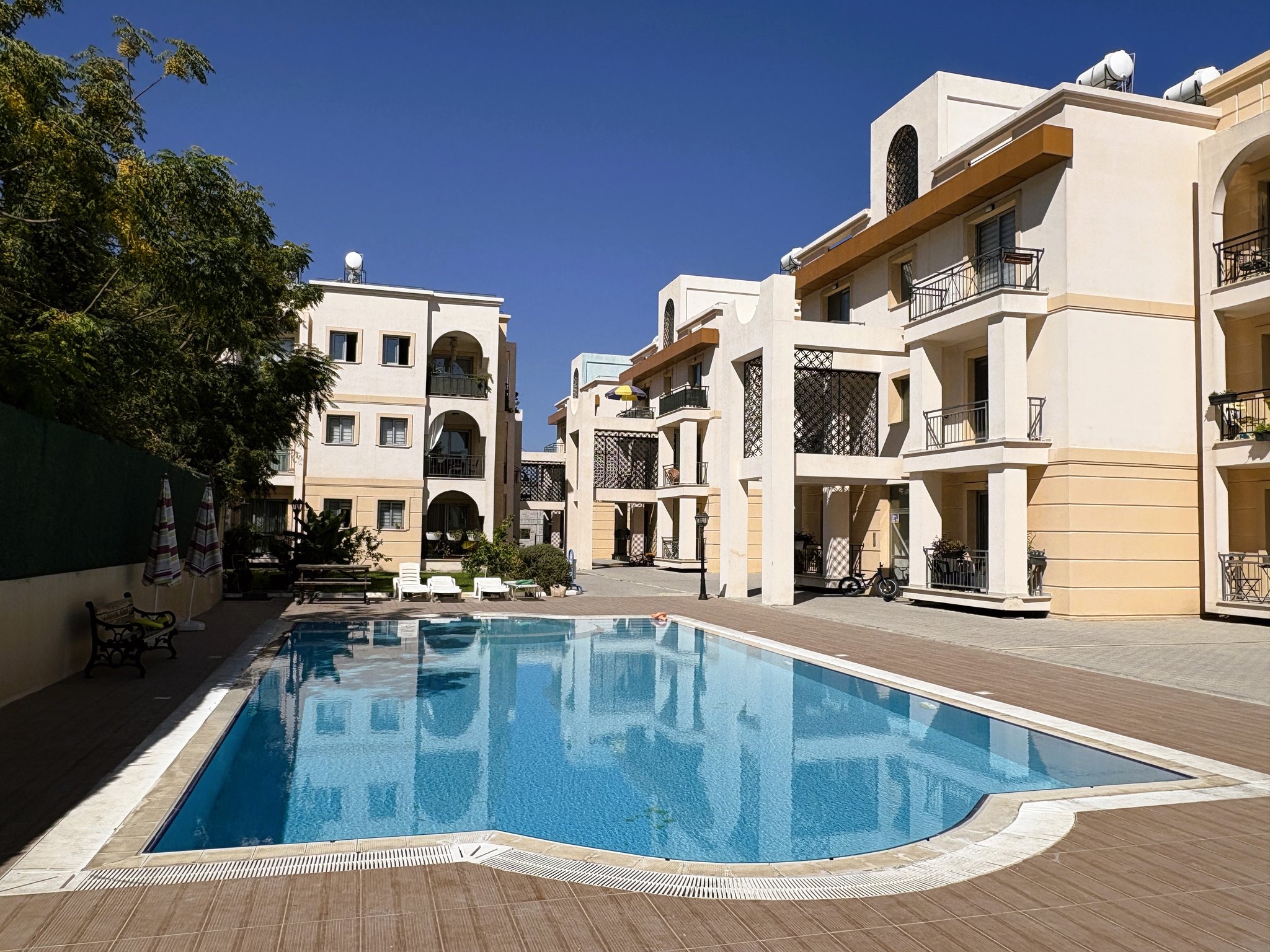 - • Large communal swimming pool and mature gardens