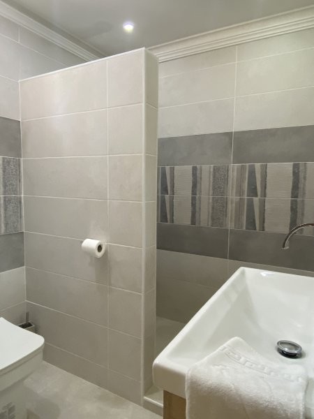 • • Three contemporary bathrooms with stylish finishes, walk-in showers, and heated towel rails.