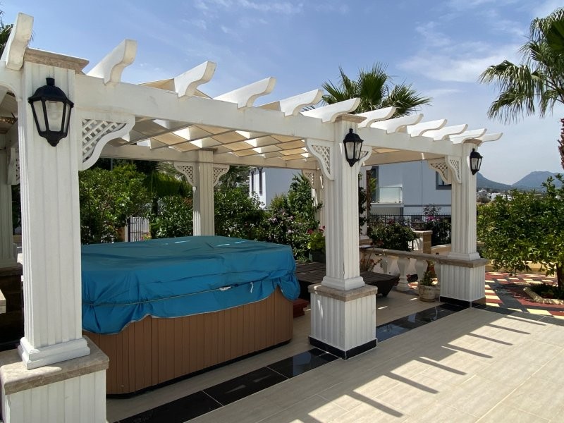 • • Extensive outdoor entertaining areas, including covered terraces, outdoor kitchen with barbecue, bar, and gazebo with hot tub.
